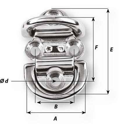 MCD106518 81.90€ ttcDiamètre 40 mm Hauteur 30 mm 2 points de fixation visserie tête fraisée 5 mm Entre axes visserie 23 mm Charge de travail 850 kg Charge de rupture 1 500 kg Poids