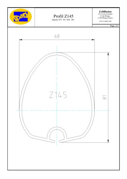 - Pour section intérieure ovoïde triangulaire 79 mm X 66 mm (Voir Schéma profil mât Z145)